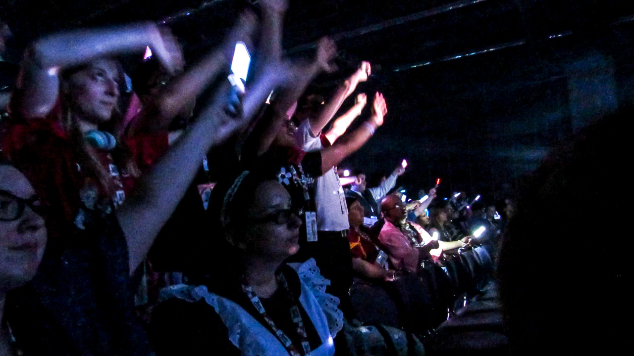 Ich hatte das Glück in der ersten Reihe zu sitzen, direkt von dem Bildschirm, und es war toll. Zu wenig Lautsprecher gab es auf keinen Fall, der Ton war laut und klar und für jemanden wie mich, der seinen Bass liebt, war der Druck gegen meine Brust perfekt. Eine solche Show muss man einfach live erleben, das Gefühl ist einfach ein komplett Anders. Der Bildschirm war klar, die Farben lebendig und alles flüssig. Es gab auch eine Menge an Zuschauern, der Raum war praktisch voll. Wenn ich schätzen müsste, würde ich sagen es waren um die 2000. Ich habe von etlichen Leuten gehört, dass die IA nicht einmal kannten, aber anhand der Reaktion und dem Enthusiasmus der Zuschauer, hätte man denken können, man wäre in einem Raum voller Langzeit-Fans. Es war toll, so viele begeistert mitmachen zu sehen und es könnte heißen, dass wir bald viele neue Fans haben.