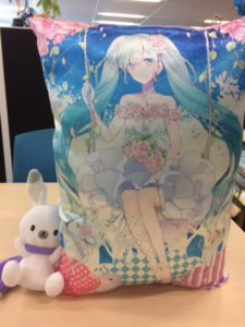 Both pillows are pretty large, as you can see from the size comparisons! Piapro’s blog was kind enough to give us some nice pictures of the items! In addition to them being quite large, the blog says the pillows are made of satin as well! Both pillows are 500 mm x 350 mm.