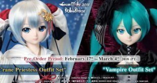 Two new outfits for Dollfie Dream Hatsune Miku will be open for preorder starting tomorrow: the SNOW MIKU 2018 Crane Priestess outfit set celebrating Snow Miku 2018, and the Vampire outfit set based on the visual by PEACH-PIT, the author of “Rozen Maiden”. Both outfits will be available for preorder starting …